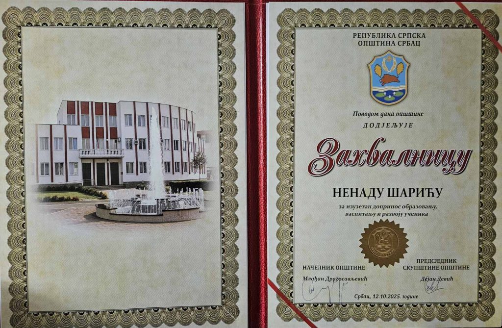 У оквиру обиљежавања Крсне славе Покрова Пресвете Богородице и Дана општине Србац, у недјељу, 12.10.2025. године, по први пут је одржана свечана сједница Скупштине општине Србац, током које су уручена признања најзаслужнијим појединцима, колективима и организација.