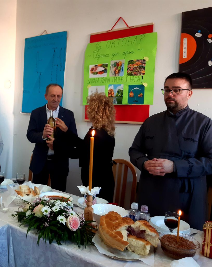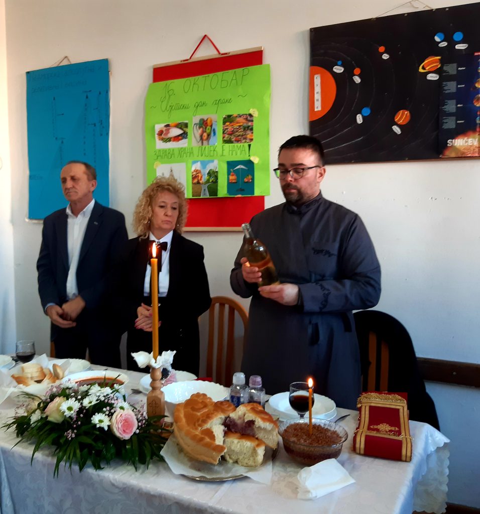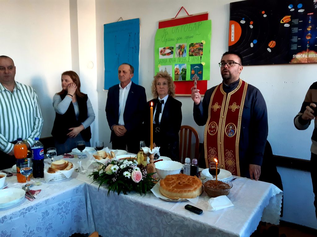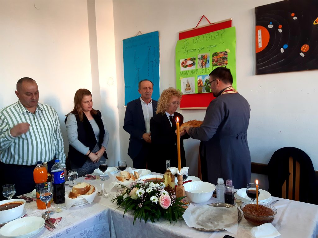 Обред освјећења пшенице и ломљења славског колача водио је вјероучитељ наше школе, јереј Ненад Ђурић. Након ломљења славског колача уприличен је ручак за званице, представнике локалне самоуправе, Борачке организације, актуелне и пензионисане раднике школе, представнике Савјета родитеља и Школског одбора, наше сараднике, донаторе и остале госте.