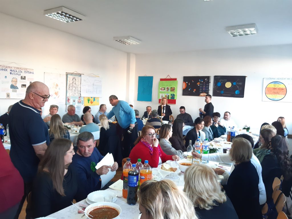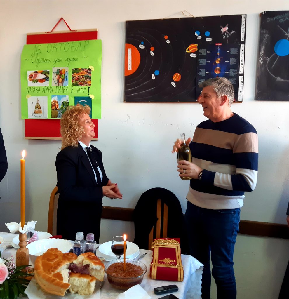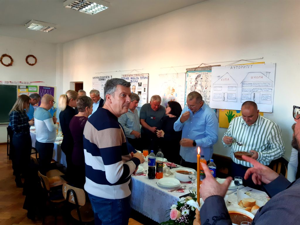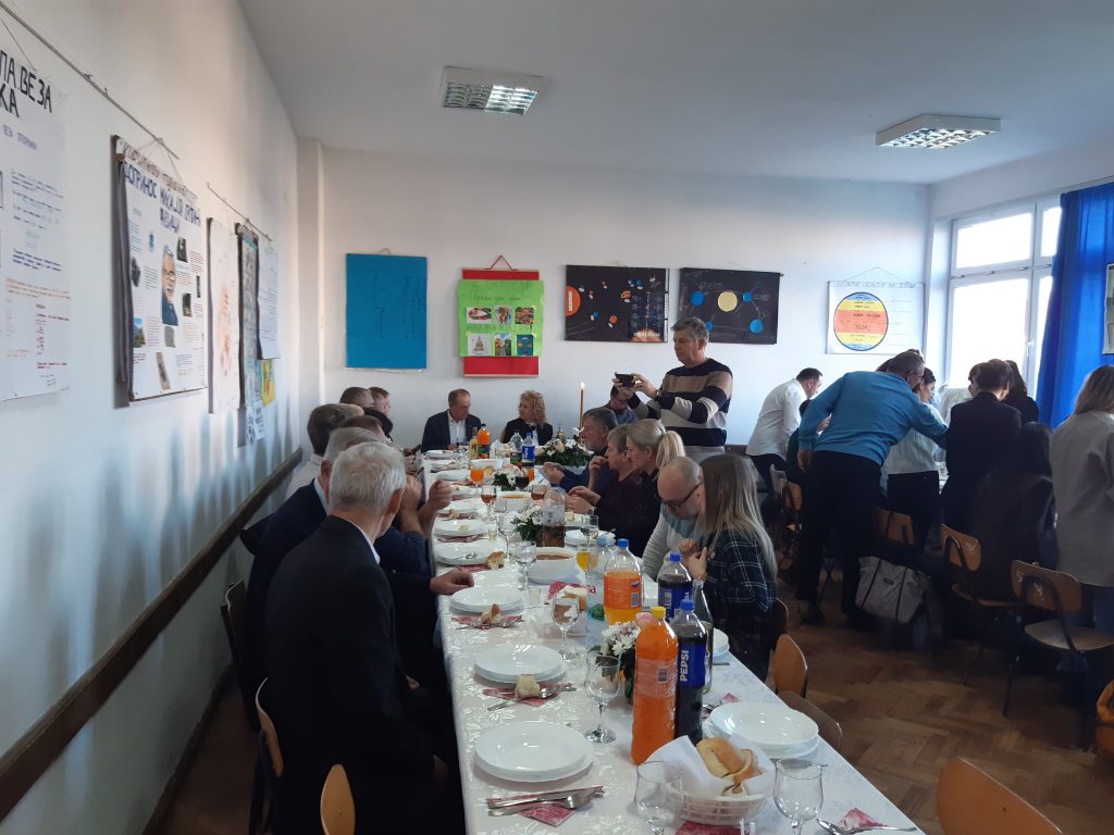 Обред освјећења пшенице и ломљења славског колача водио је вјероучитељ наше школе, јереј Ненад Ђурић. Након ломљења славског колача уприличен је ручак за званице, представнике локалне самоуправе, Борачке организације, актуелне и пензионисане раднике школе, представнике Савјета родитеља и Школског одбора, наше сараднике, донаторе и остале госте.